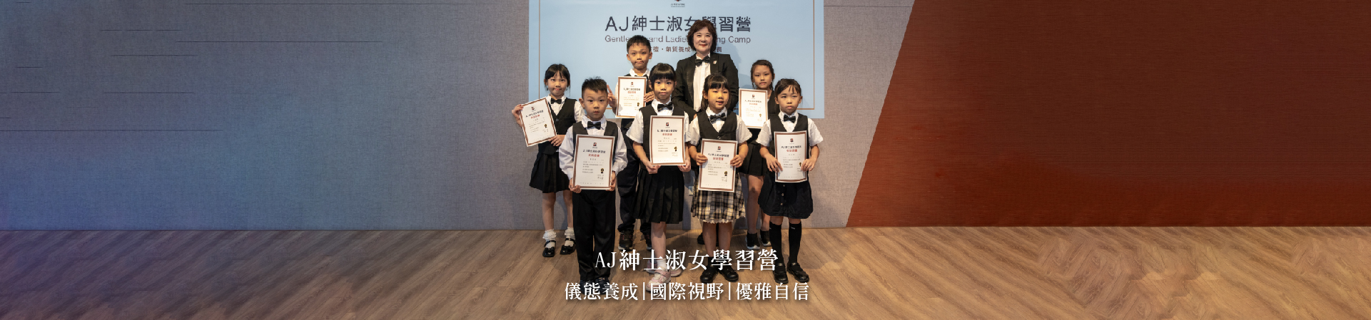 在AJ紳士淑女學習營,孩子穿上西裝背心、系上小領結